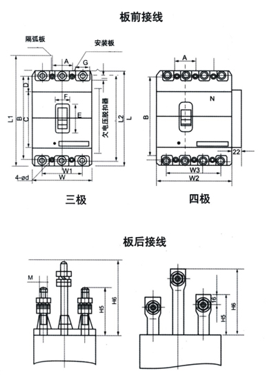 D型:N極安裝過電流脫扣元件,且N極始終接通,不與其它三極一起合分